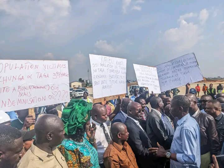 Les habitants des localités de Tchunga et Taga, affectés par les travaux d’élargissement de l’aéroport national de Bunia, ont profité de l’arrivée du ministre des Infrastructures et Travaux publics, Jonh Banza, ce jeudi 18 décembre 2025, pour exprimer leurs préoccupations liées au retard du paiement des indemnisations de la troisième phase. Sans recourir à une manifestation, ces populations ont arboré des banderoles à l’aéroport national Murongo de Bunia afin d’attirer l’attention des autorités sur une situation qu’elles estiment longtemps négligée. Elles réclament la régularisation de leurs droits, plusieurs années après avoir été impactées par des travaux d’utilité publique. Réagissant à ces revendications dès son arrivée, le ministre des Infrastructures, Travaux publics et Reconstruction (ITPR) a adressé un message rassurant aux sinistrés. « Nous sommes tous des Congolais. Je suis venu pour tout régulariser. Nous allons nous voir et nous allons trouver des solutions », a déclaré Jonh Banza, promettant des mesures imminentes pour résoudre ce dossier sensible. Ces propos ont suscité un sentiment de soulagement parmi les populations concernées, qui espèrent enfin voir leurs indemnisations effectives après une longue attente. Pour elles, cette déclaration constitue un signal fort de l’engagement du gouvernement à réparer les préjudices subis et à restaurer la confiance avec les communautés affectées. Djodjo Djamba